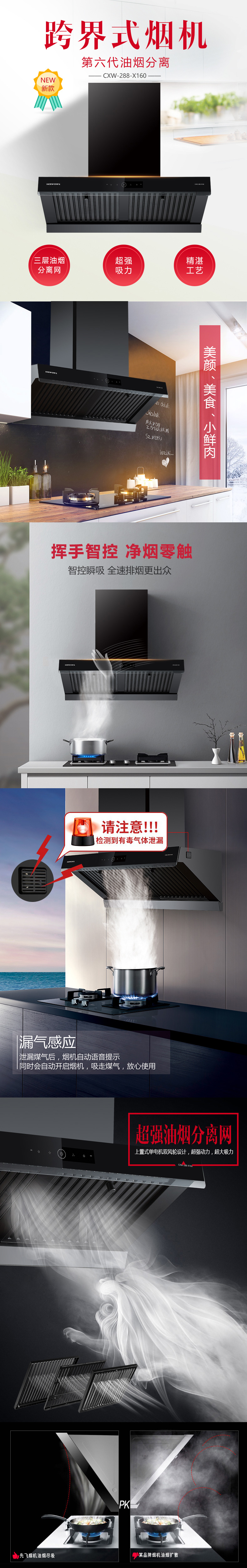 帶煤氣泄漏感應 爆炒大吸力 鋁合金加重三層油煙分離網 超強吸油動力 揮手智控 凈煙零觸 閃電般速吸油煙 20m3/min
