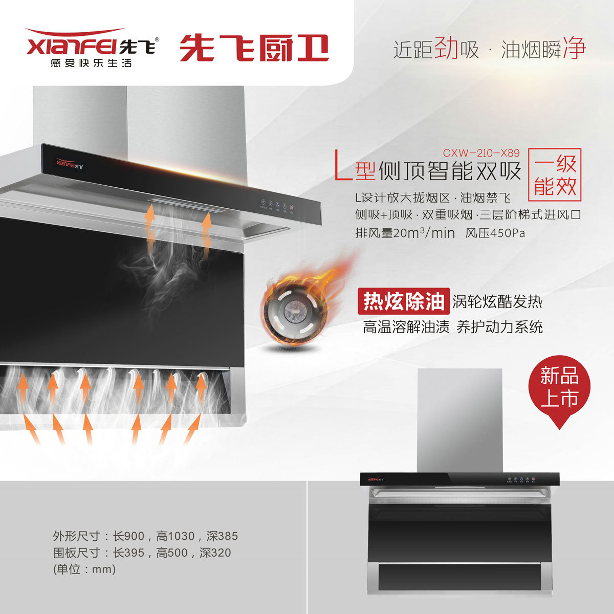 側吸+頂吸 雙重吸煙 三層階梯式進風口