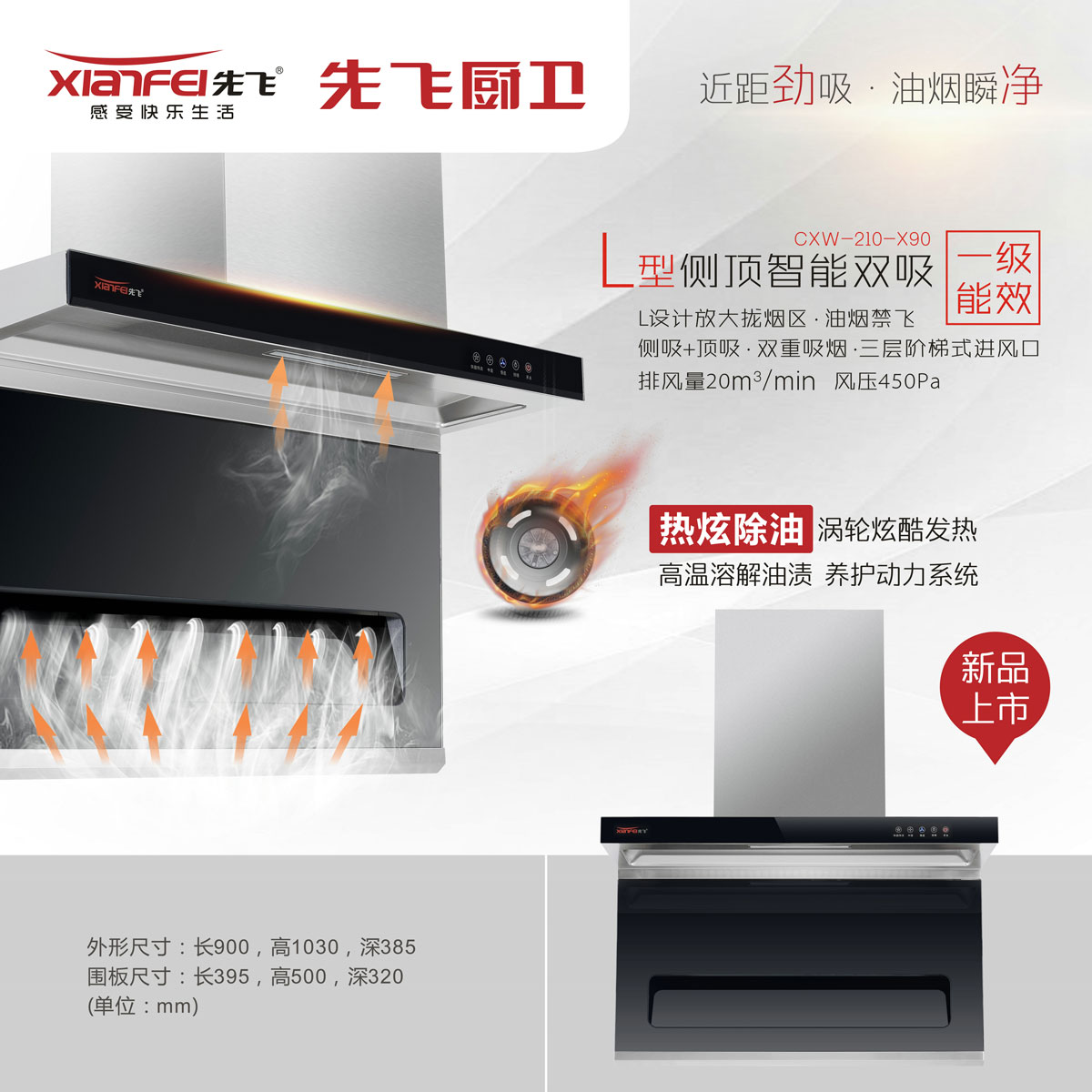 側吸+頂吸 雙重吸煙 三層階梯式進風口