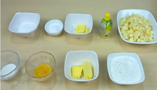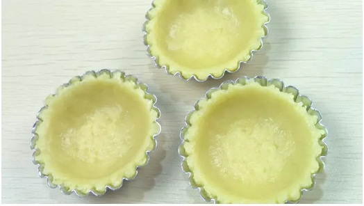 用料:低筋面粉 150g、黃油 60g、蛋液 30g、水(牛奶) 20g、糖 15g、黃油 10g、糖 30g、蘋果 2個、鹽 少許、檸檬汁 少許、蛋撻模 6個、蛋液 少許(刷表面)