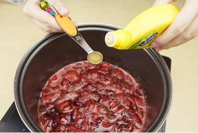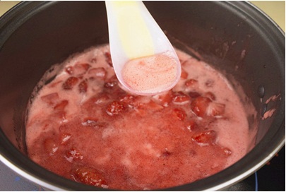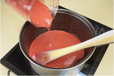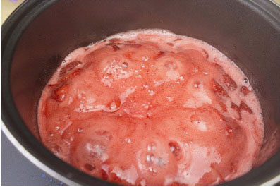 10.煮好的草莓醬會比較濃稠(大概需要30-40分鐘左右),草莓醬倒入料理機攪碎;(圖10)