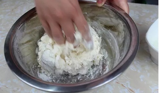 3.用手把面粉攪成小疙瘩;(圖3)
