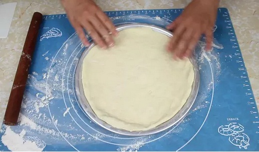 6.面餅鋪好在披薩盤上;(圖6)