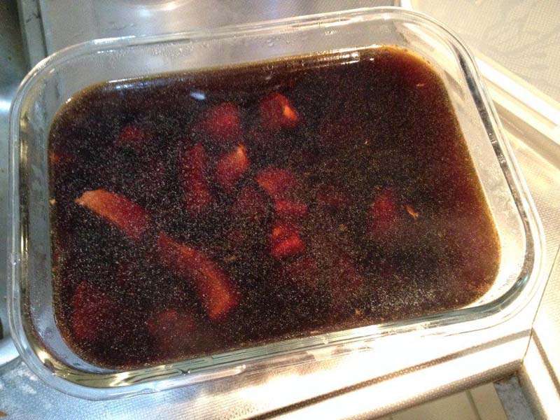 出鍋后入可以將肉塊稍稍打散,浸泡在湯汁里入冰箱過夜,使之更入味。(附圖9)