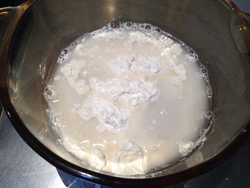 1、將酵頭中的原料混勻,放溫暖處發(fā)至膨脹后回落,內(nèi)部呈蜂窩狀。發(fā)酵時將面盆放在發(fā)酵箱里,這個過程約2小時。各家條件不同,時間僅供參考,還是要看程度。