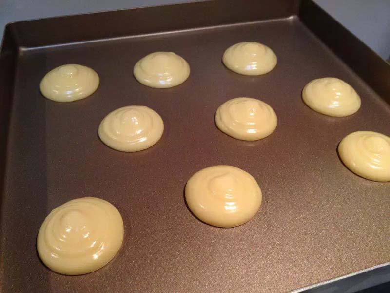 蛋黃糊:兩個大個雞蛋黃或三個小個雞蛋黃、水25ML、檸檬榨汁15ML、色拉油30ML、低粉50克