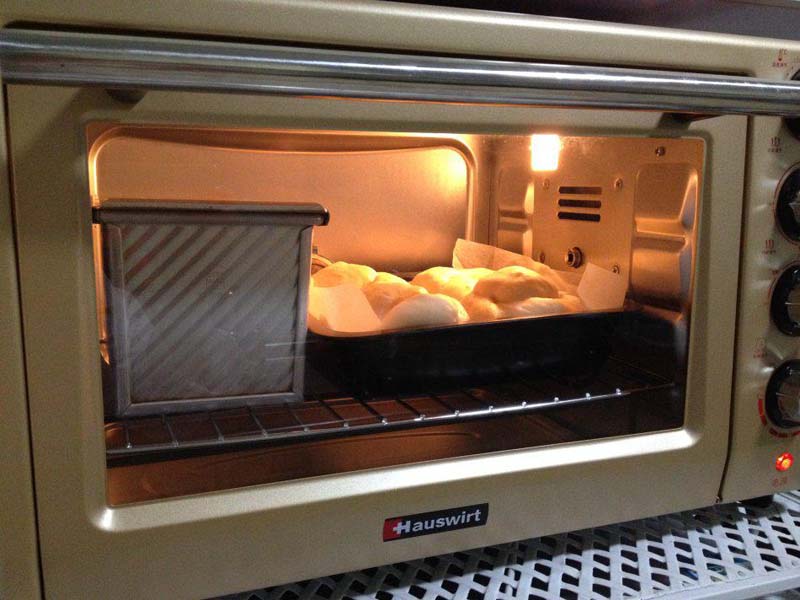 7、最后發(fā)酵結(jié)束,送入預(yù)熱180℃的烤箱,下層,上下火,30分鐘左右。
