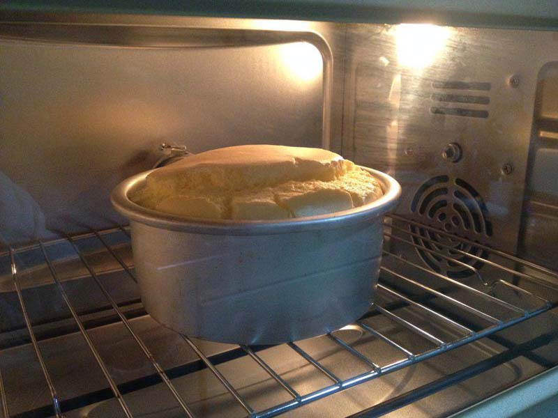 我喜歡在普通的戚風(fēng)配方里將15ML的水換成檸檬汁,蛋糕會變得更加清新,即使只有雞蛋、面粉、水、油、糖,還是有些些輕乳酪的口感哦!(附圖38)
