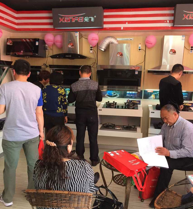 在答謝會現場,先飛蒸汽噴洗煙機、雙電機煙機、“隨意停”煙機、新品灶具、數碼恒溫燃熱、冷凝機等都是焦點,也是客戶們下單訂貨的熱點。先飛營銷總監聶總、大區總監梁總、煙臺先飛王總等共同祝福煙臺先飛客戶們生意興隆,五一熱賣,繼寫奇跡,再創輝煌!