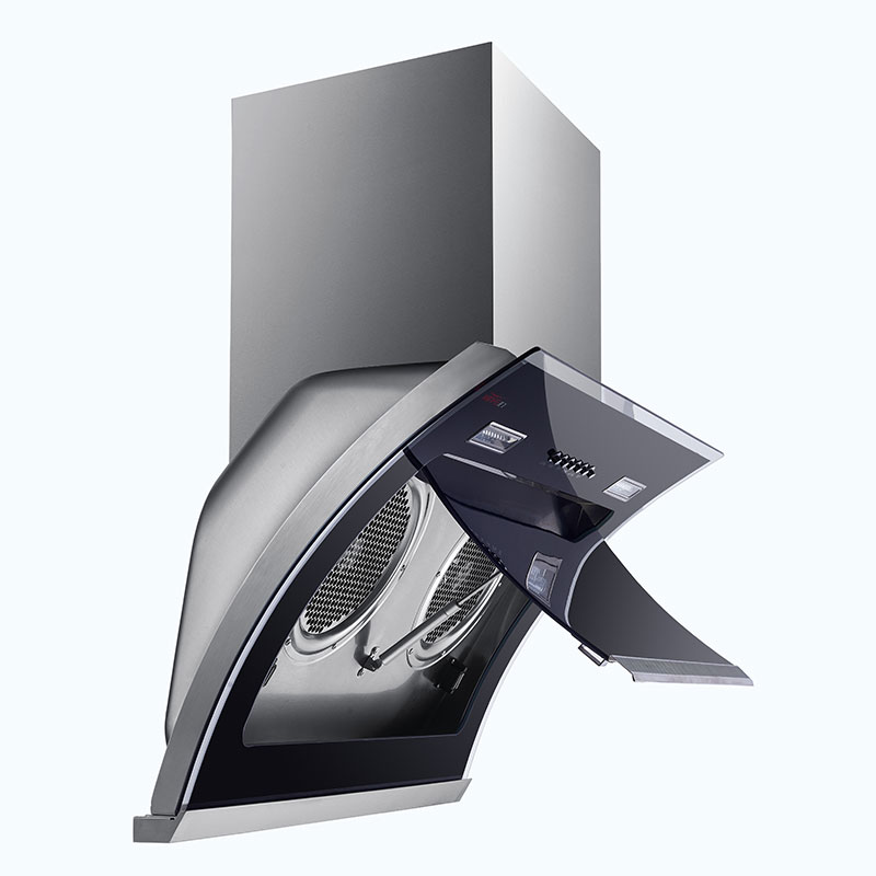 1.大弧形與雙電機黃金搭配,完美籠煙,杜絕跑煙;六位亞光機械按鍵,調節風力隨心所欲;