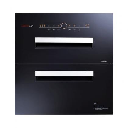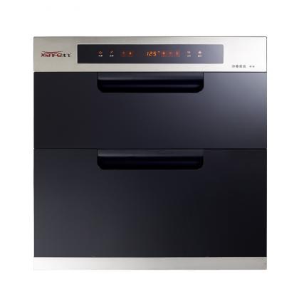 5.觸摸面板控溫精準,隱藏式拉手設計,黑色鋼化玻璃面板,時尚大氣,經久耐用。先飛嵌入式消毒碗柜已經推出90升、100升、120升多種款式可供廣大消費者選擇。
