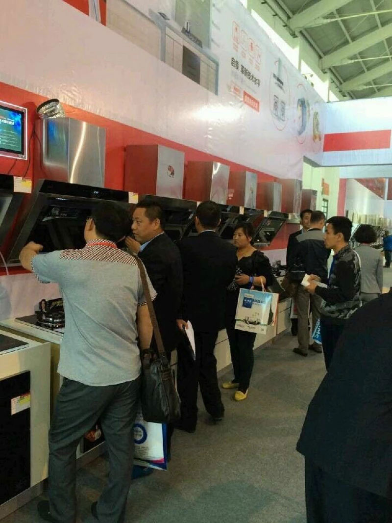吸油煙機常常是廚衛產品的焦點與亮點。先飛吸油煙機不僅品質上乘,款式時尚,有口皆碑,而且在吸油煙機陳列上整齊劃一,間距一致,如參加俄羅斯的中國儀仗隊般刀切斧劈,氣勢磅礴。