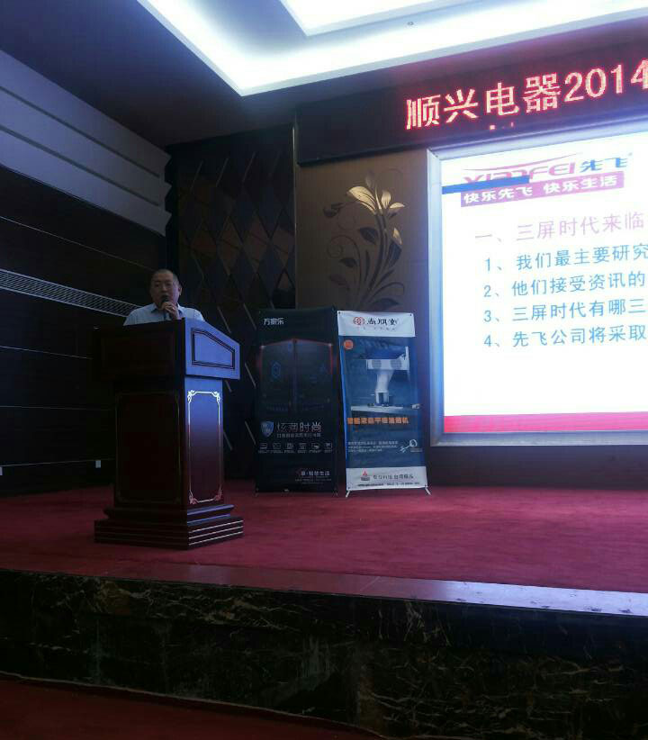 2014年8月8日,先飛莆田經銷商會議在明珠國際大酒店隆重召開。會議氣氛熱烈,眾多分銷商對先飛新品煙機、灶具、消毒柜等產品表現出極大的興趣,對先飛產品積極下單訂貨。尤其是先飛“蒸汽清洗”吸油煙機系列、2014年8月新品煙機X35、X36、X37、X38、X39等下單量達到全場下單高峰。