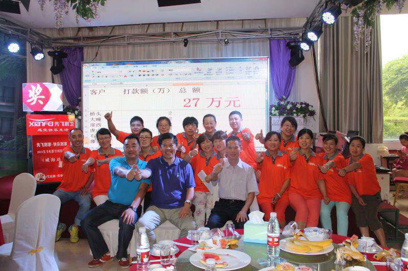 在本次榮成招商會議之前,威海先飛共派出6名業務精英全部下到榮成下面17個鄉鎮,全面掃街多達半個月時間。而大家的辛勤耕耘,有效保證了到會客戶多達34家,回款30萬以上,一次性全面打開先飛廚衛在榮成的市場,這種招商方案是值得大家學習與借鑒的!