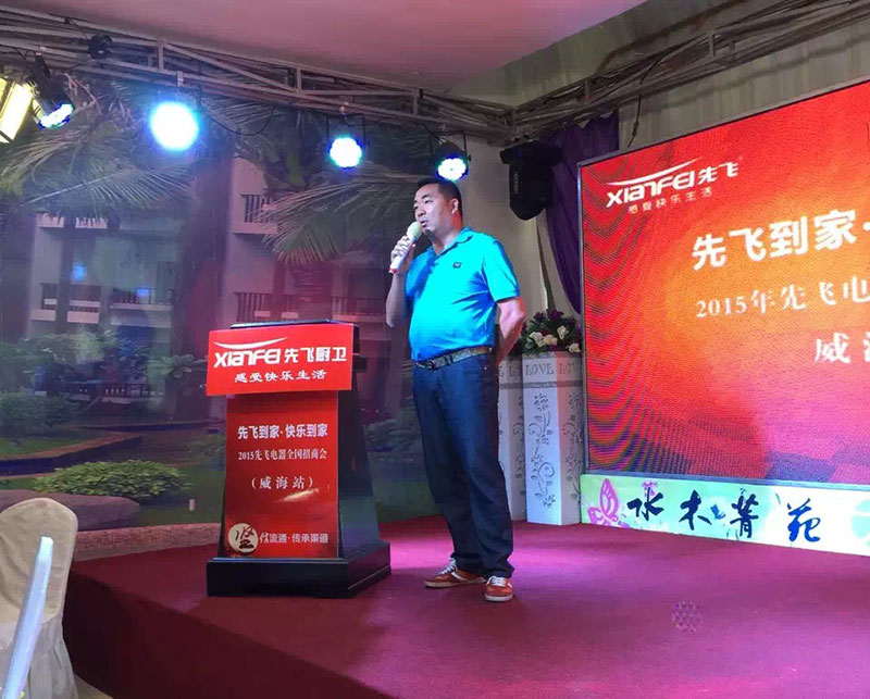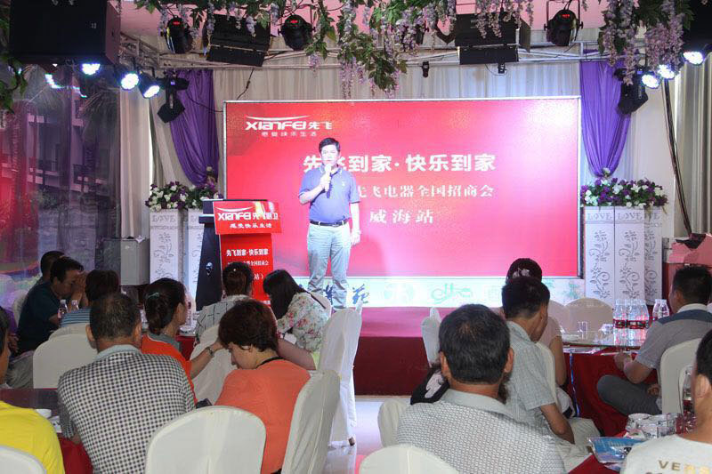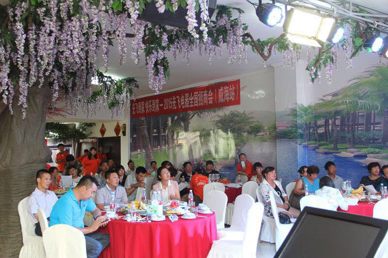 2015年7月16日,在威海榮成市(縣級市)水木菁苑生態酒店內,正在隆重召開先飛廚衛2015年全國招商會議(威海站)。先飛總部黃總、威海先飛李總蒞臨會議現場,與到會意向客戶作了面對面近距離交流,推出年度最大力度招商政策,會議現場氣氛極為活躍,到會客戶踴躍下訂金要貨!