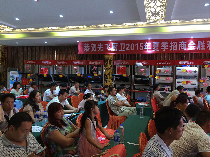 2015年7月20日,南陽先飛招商會(huì)議在王府飯店隆重召開,到會(huì)客戶多達(dá)50多家,為南陽地區(qū)廚衛(wèi)行業(yè)優(yōu)秀零售商的大聚會(huì)。先飛公司聶總在會(huì)上作了先飛公司介紹、廚衛(wèi)行業(yè)分析與先飛品牌優(yōu)勢(shì)推介,獲得客戶們的廣泛認(rèn)同與掌聲。南陽先飛梁總公布并講解了先飛全方位的招商政策:兩大承諾、三大支持及大力度的訂貨政策,引導(dǎo)客戶們紛紛下單,積極合作。