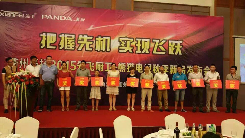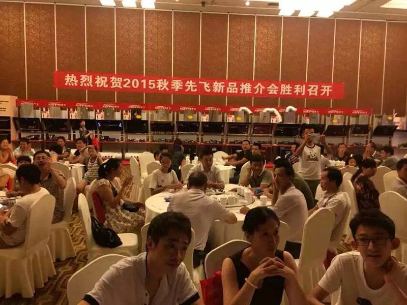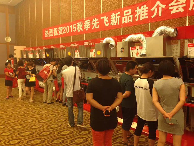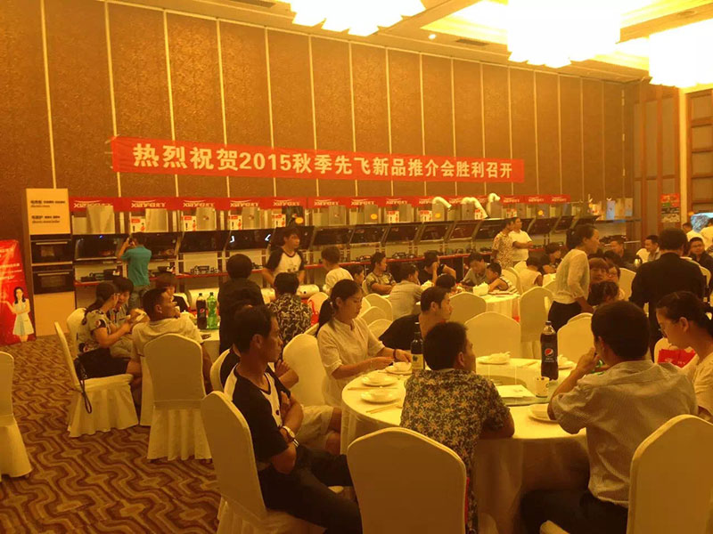 2015年8月18日,衢州先飛經銷商會議在衢州國際大酒店隆重舉行,先飛公司黃總親臨現場,面對150多名衢州地區先飛分銷商朋友們詳細分析了行業與市場,講解了先飛產品規劃與未來發展規劃,特別是對先飛秋季新品“大吸力“煙機等作了較為詳細的說明。