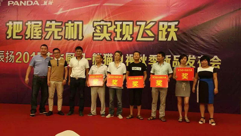 會場上展示了先飛眾多新品,共采用了18米展柜,深深吸引經銷商朋友們圍觀挑選產品。先飛大區經理胥總作了會議政策解讀,引得客戶們紛紛下單要貨。會議上頒獎與抽獎齊飛,讓眾多經銷商朋友們高興而來,滿意而歸!