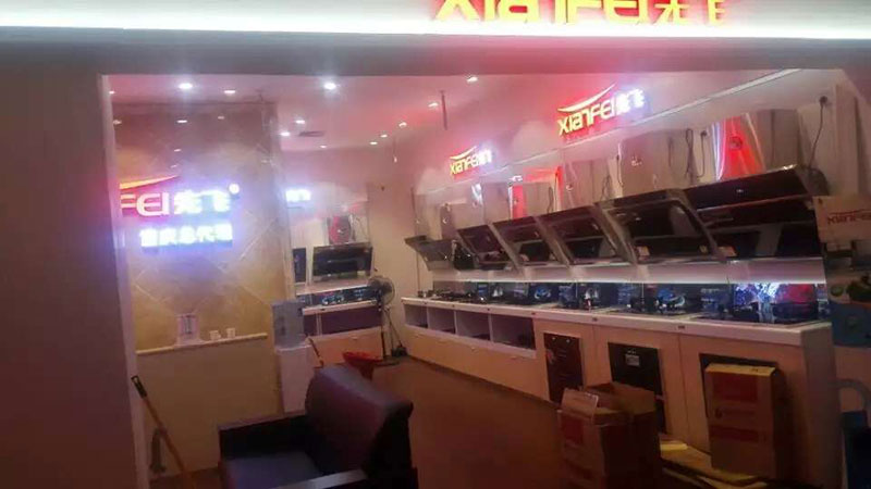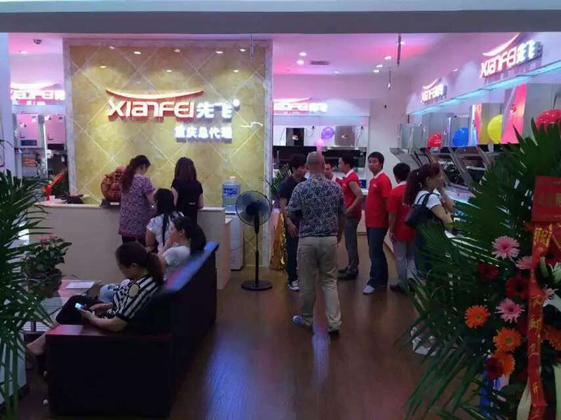 2015年9月初,重慶先飛以打造專業旗艦店的形式隆重進駐重慶馬家巖大川建材市場,建面108平方米,位于大川建博中心廚衛展示區,全部使用了先飛最新款的超越版展架,全面展示了先飛煙機、灶具、熱水器、凈水器、電烤箱、電蒸爐系列產品 。