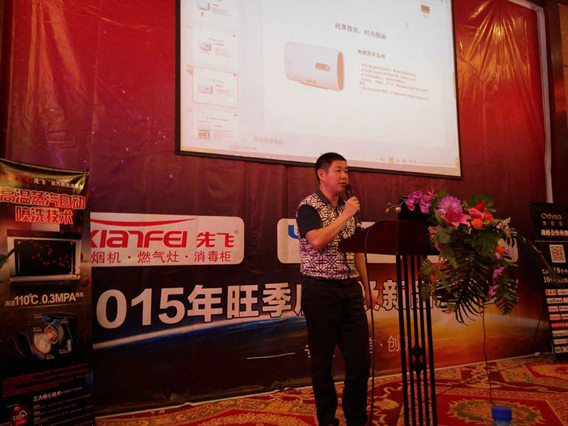 曾總:亮點1.堅定“蒸汽噴洗”煙機必定取代人工清洗煙機的信心。亮點2.參會經銷商主力是配套渠道經銷商,其更早更前端更精準鎖定了消費者,市場前景光明。亮點3.經銷商對先飛品牌定位很滿意,是目前最適合龍巖市場城市地位和消費力水平的廚電品牌。