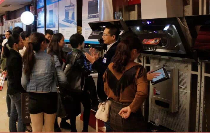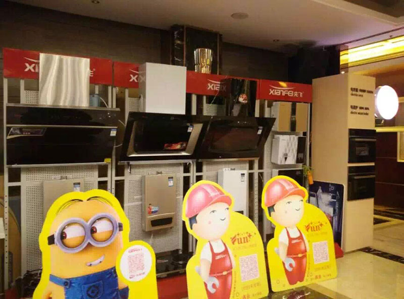 先飛電器此次參會,不僅展示了先飛的煙機、灶具、熱水器等傳統的廚房電器產品,還展示了2015年熱銷市場的嵌入式電蒸箱、電烤箱,凈水器系列產品。先飛展臺經過成都先飛團隊精心布展,終端燈箱引人注目,互聯網+元素充分體現。(08 09 10)