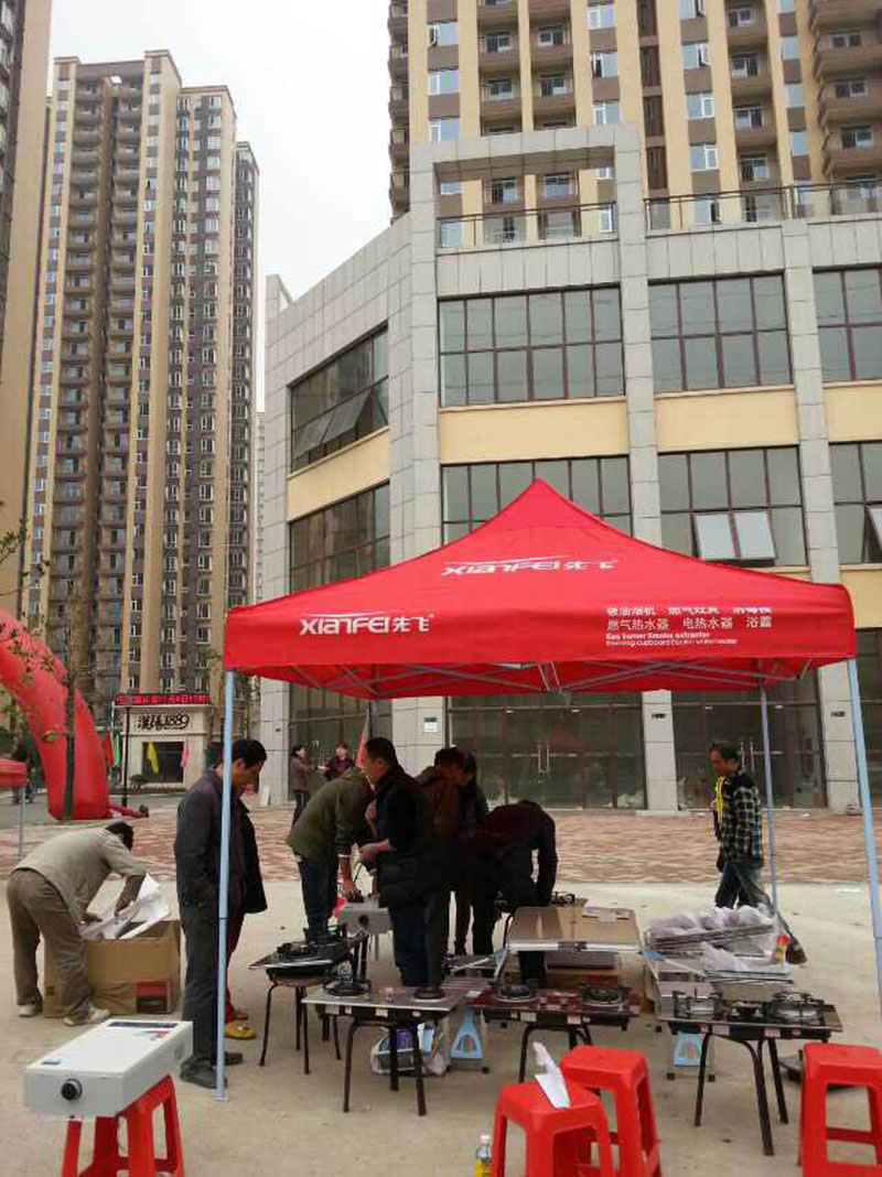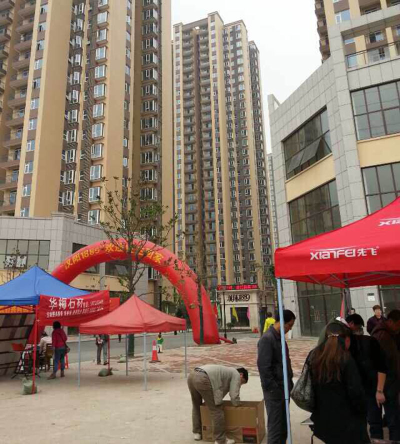 2、設點宣傳:在小區內設點,放置太陽傘、拉條幅、布幅、X展架等很容易聚集人氣的宣傳物料;