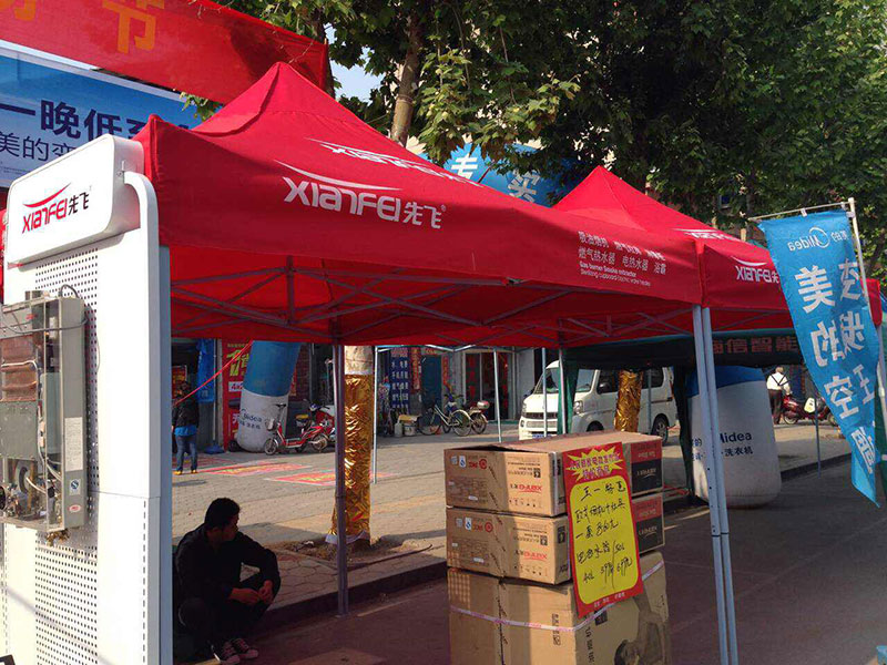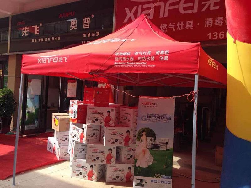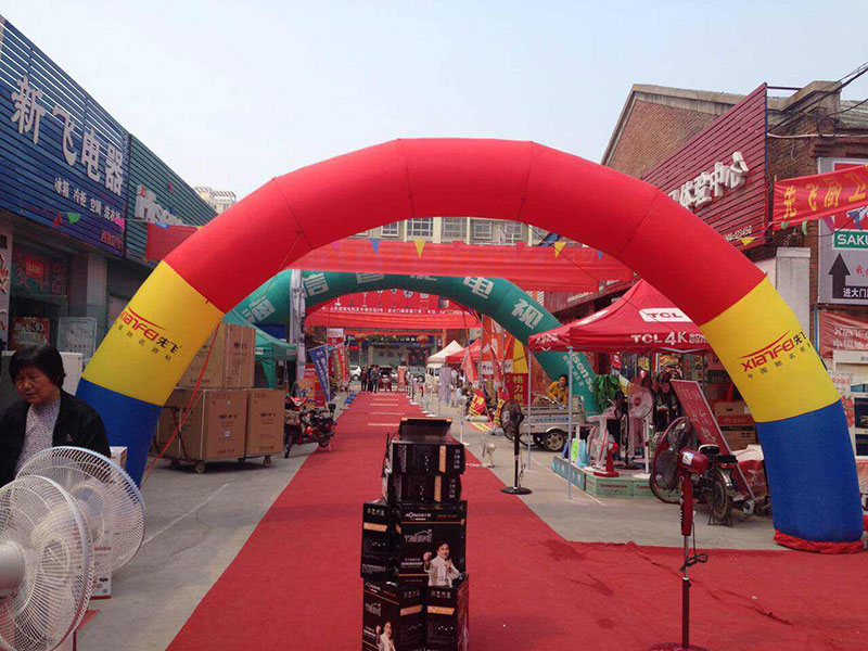 (2)形象展示物料:促銷信息性不強,偏重于氛圍裝點營造的物料;例如帳篷、拱門、太陽傘、地毯、氣球、促銷臺、彩帶、彩旗、氣模等;活動內容本身可以簡單或者平常,但是在布置上不能馬虎。店面一定要通過宣傳物料的布置產生強大的視覺沖擊力和吸引力。