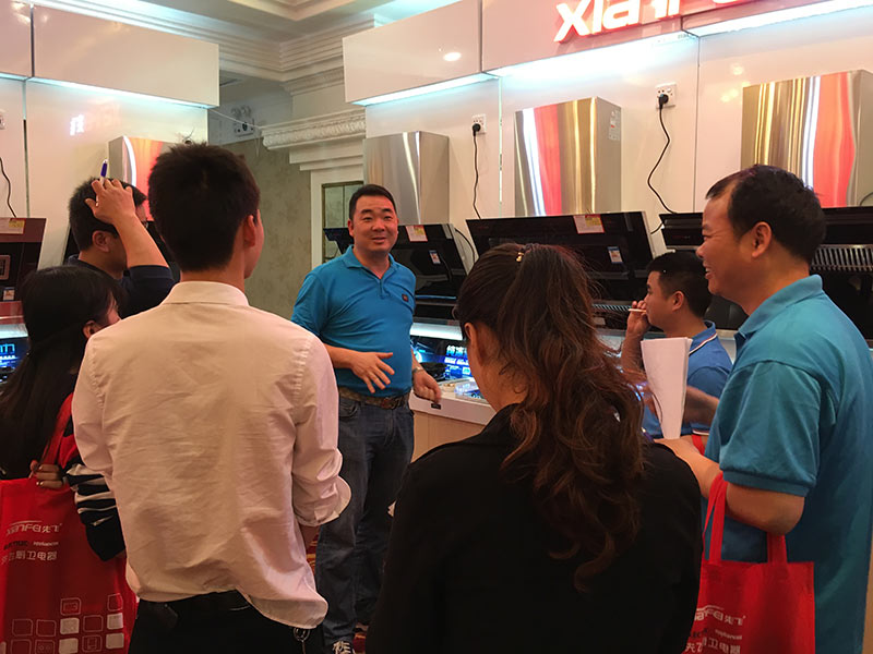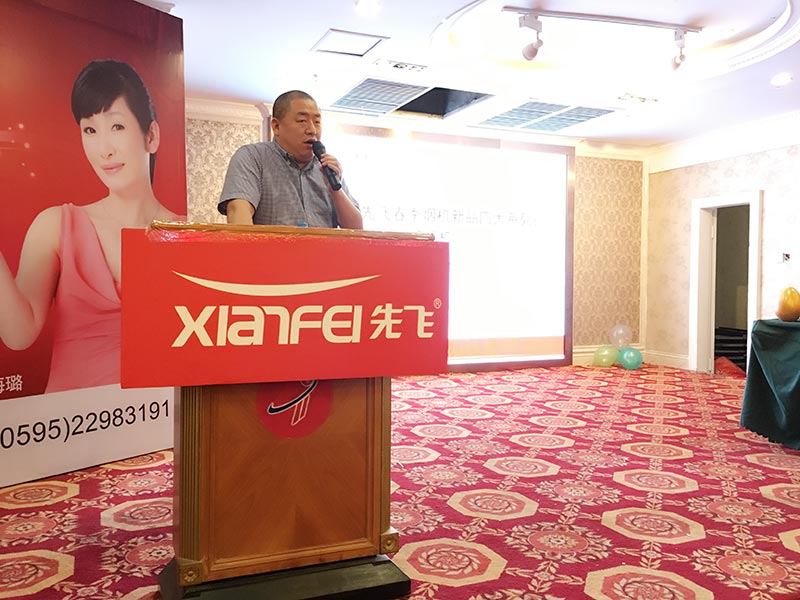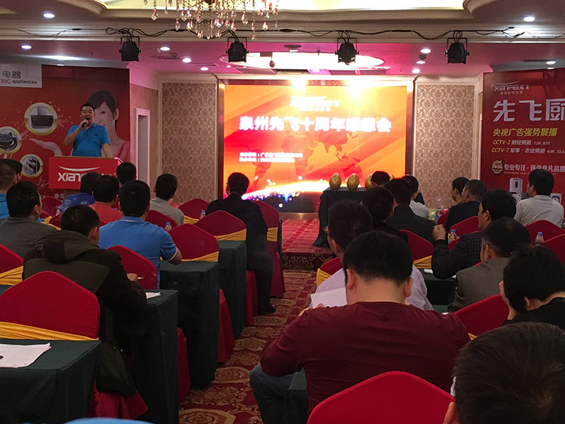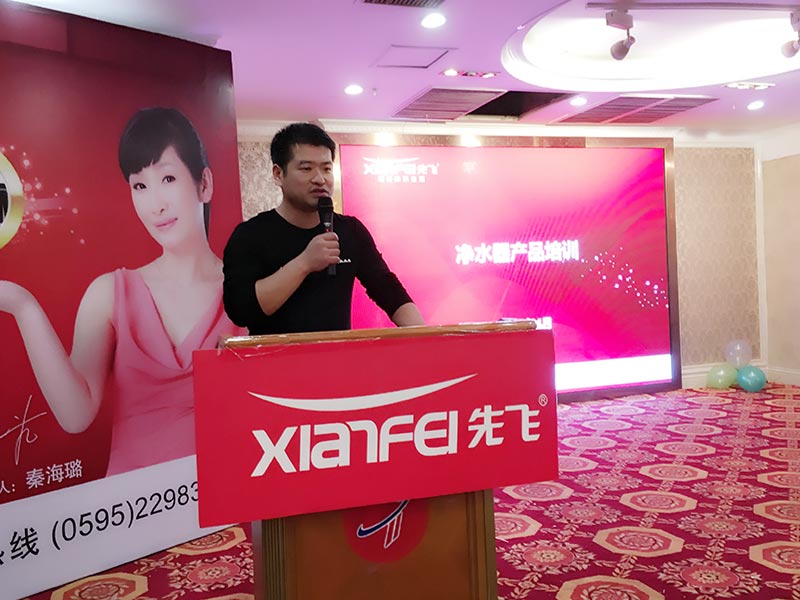 先飛公司黃總、聶總、大區經理林儉富、凈水器主管陳磊全部到場與客戶親密互動,泉州經銷商張總帶領十幾人的公司團隊更是全力投入,讓八十多家到會客戶感受到先飛實干的氛圍,并將整場會議推向成功與圓滿!