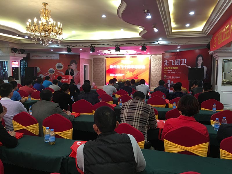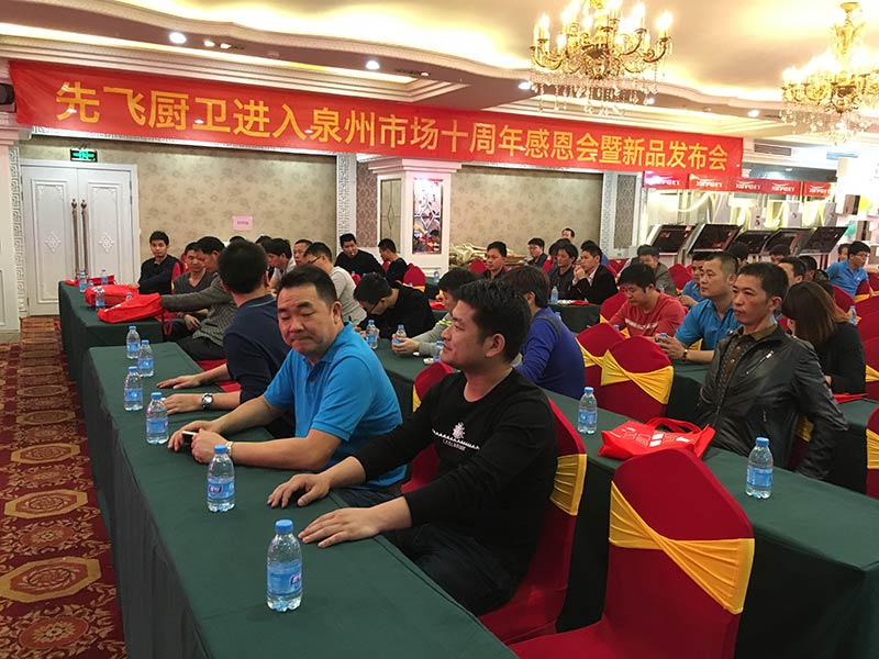 2016年4月12日下午,在福建省泉州市明發大酒店二樓宴會廳內,先飛廚衛進入泉州市場十周年感恩會暨2016春季新品發布會正在熱火朝天舉辦中!