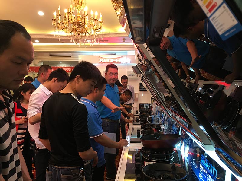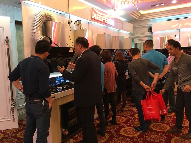 先飛廚衛在會場內共計陳列了25米煙機、灶具、消毒柜、凈水器、燃熱、電熱等產品,其中煙機與灶具基本上都是新品占主導地位。向全國其他兄弟區域一樣,先飛新品煙機、新品灶具、新品凈水器再一次上演被層層疊疊圍觀、被你爭我搶下單,氣場強悍,人潮澎湃!