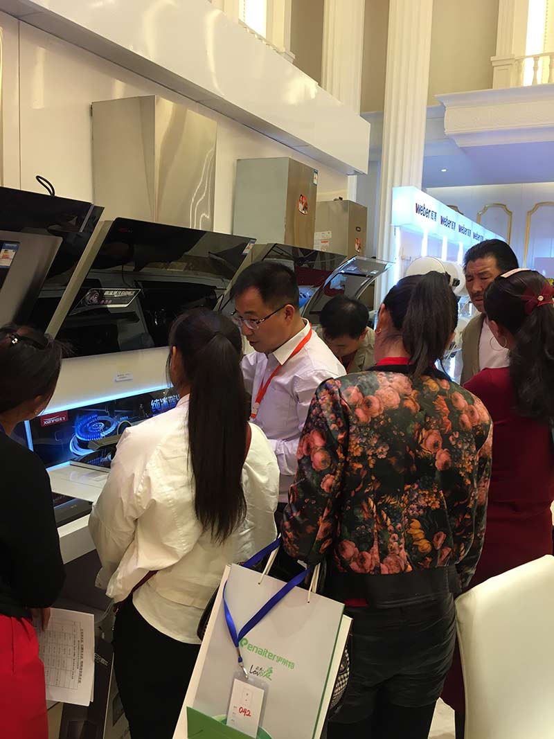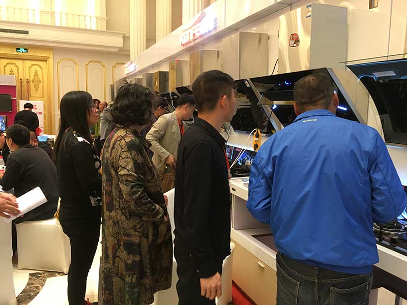 先飛廚衛高端形象參展,15米2018款展臺一字排開,極富競爭力的新款、功能性煙機悉數登場,一時間參會客戶集體圍觀,熱切交流,實在等不及的客戶就直接刷卡搶購!