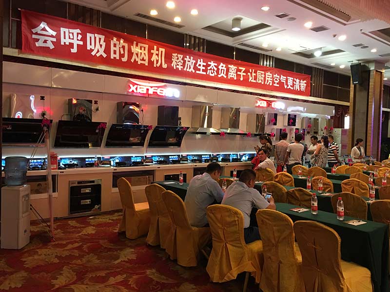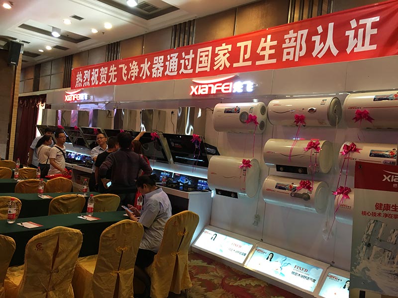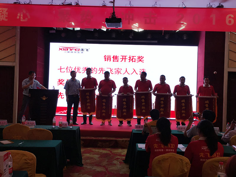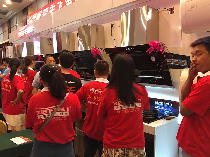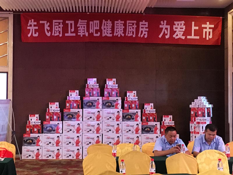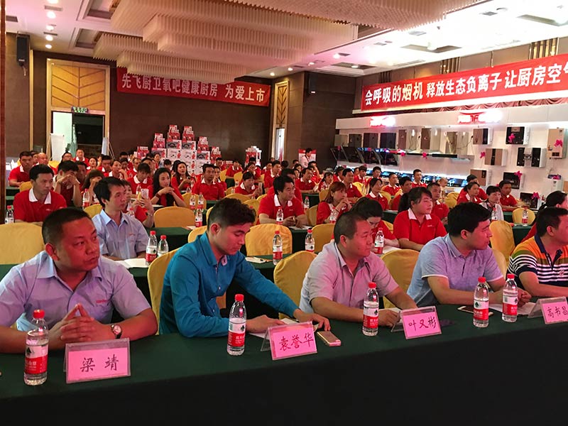 本次會議共陳列了先飛2018款超越版展柜21米,先飛蒸汽噴洗煙機、油煙分離煙機、負離子煙機、大吸力煙機、多款新品灶具、多款新品燃氣熱水器、多款新品電熱水器以及全系列凈水器都高效得到了展示,氣勢磅礴,氣場震撼!