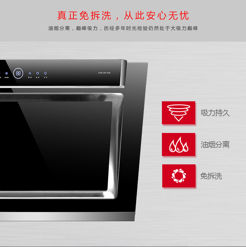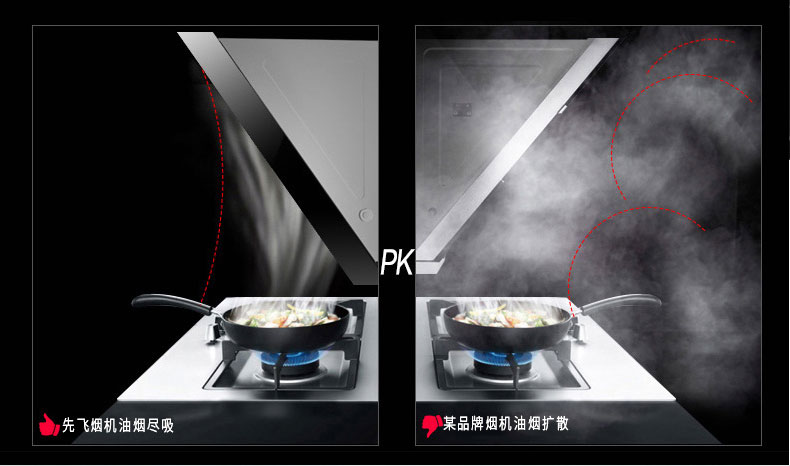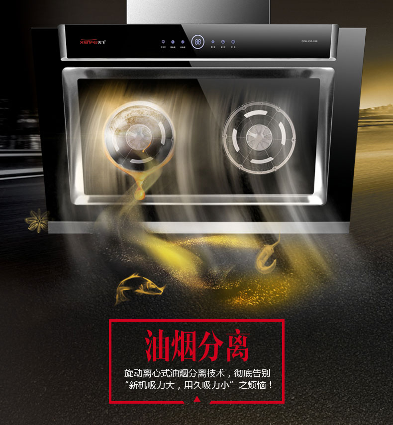 相比上一代油網(wǎng)靜態(tài)油煙分離技術,先飛旋動離心式油煙分離技術有著以下幾大顯著優(yōu)勢:①先飛旋動離心式油煙分離技術術語實現(xiàn)油煙主動分離,油煙分離率更高,可達99.8%,而上一代油網(wǎng)靜態(tài)油煙分離技術屬于被動分離,油煙分離率普遍較低;②先飛旋動離心式油煙分離煙機吸力可達到大吸力參數(shù)要求,而上一代油網(wǎng)靜態(tài)油煙分離煙機吸力普遍較小;③先飛旋動離心式油煙分離煙機機型更加美觀大氣時尚,而上一代油網(wǎng)靜態(tài)油煙分離煙機基本上是處于市場邊緣化的不銹鋼煙機;④先飛旋動離心式油煙分離技術無需拆洗,沒有售后,而上一代油網(wǎng)靜態(tài)油煙分離煙機需要經(jīng)常拆洗油網(wǎng)。