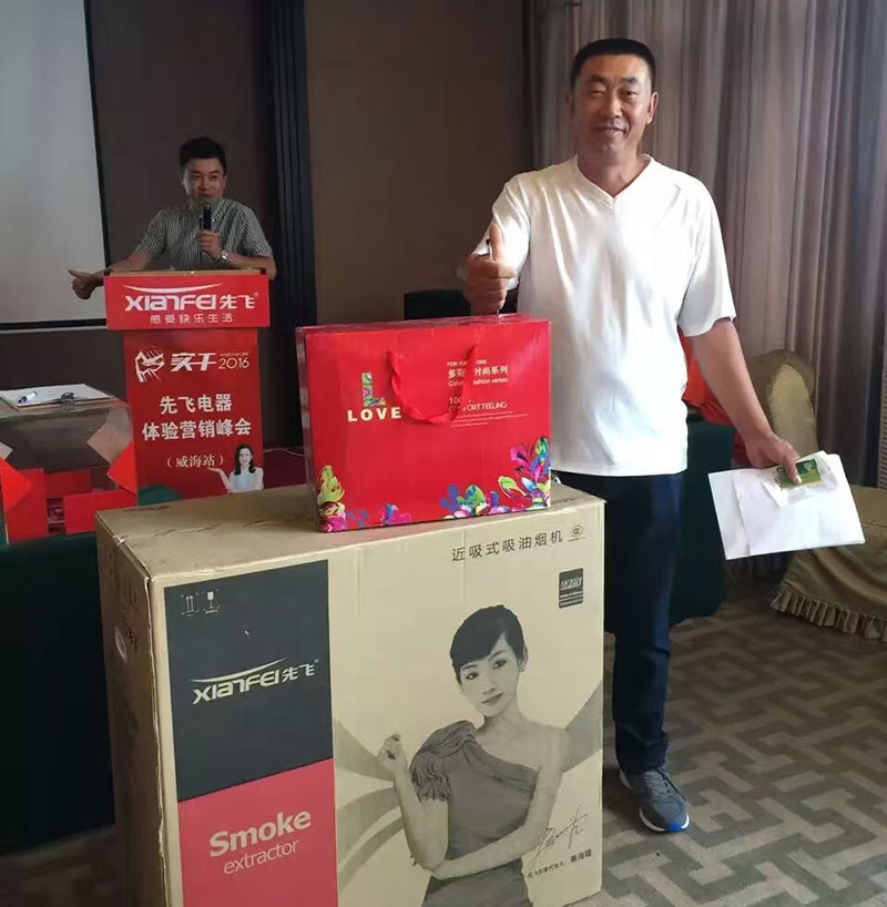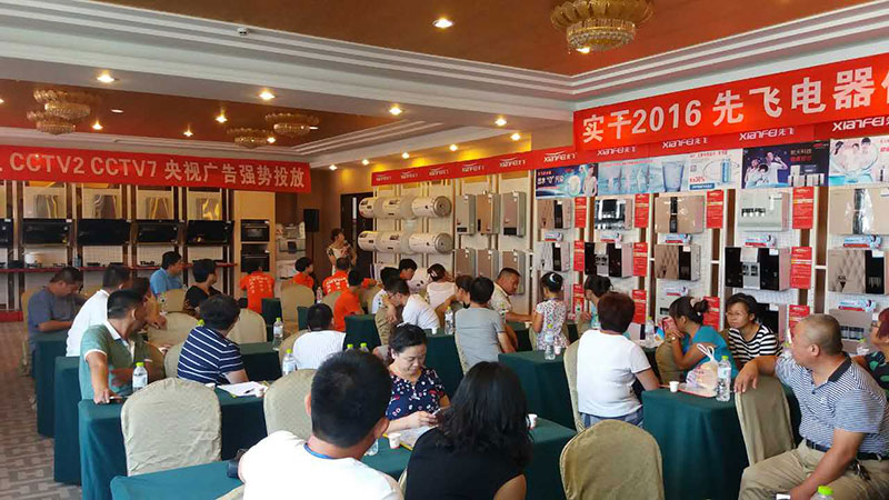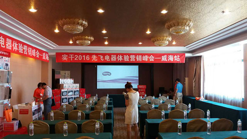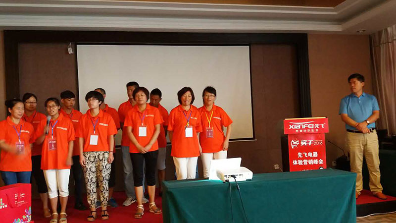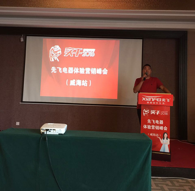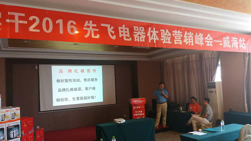 編者按:8月12日,2016年先飛電器體驗營銷峰會(威海站)在威海安然商務酒店隆重舉行。先飛公司黃總、威海先飛李總會場致辭,威海先飛團隊集體亮相,并進一步堅定了鄉鎮客戶們長期與先飛品牌合作的信心與決心!本次峰會主要是針對威海地區部分空白鄉鎮進行招商,到會意向客戶達30多家,現場成交50多萬!