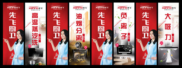同時,為迎接國慶銷售旺季,公司特推出五面先飛刀旗,分別為:“先飛廚衛”、“高溫蒸汽洗”、“油煙分離”、“負離子”、“大吸力”等,刀旗均高達5米,帶旗桿與底座。以上先飛各物料價格請咨詢公司相關部門。