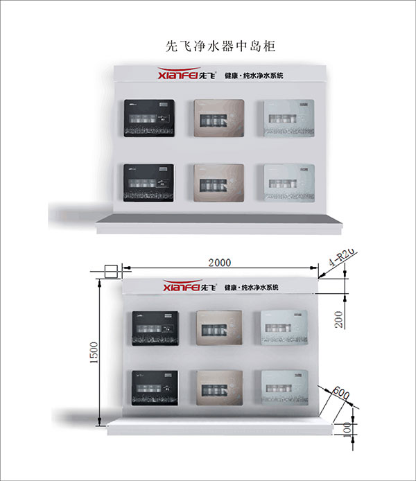 2. 先飛凈水器中島柜(寬2米,高1.5米,2組中島柜可背靠背陳列)