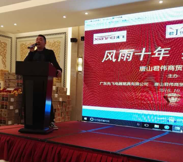 2016年10月10日,唐山先飛十年慶典,也如期于唐山盛世花園酒店召開!會議前期,專人負責溝通核心經銷商,并準備了大量標新立異的禮品,回饋參會客戶!