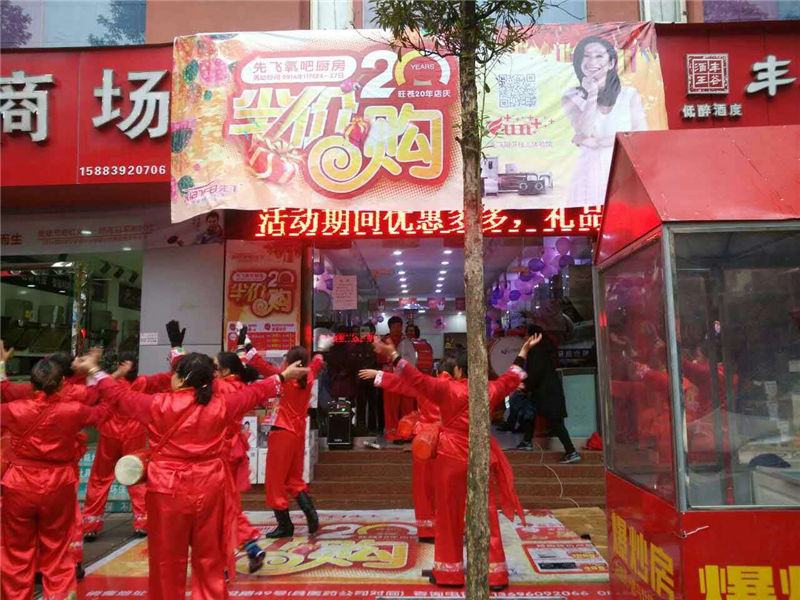 活動開始前,四川先飛促銷團隊及時到位,進行宣傳預熱,通過流動廣告車進行全城宣傳,力爭把本次活動的好消息傳遞給每一位旺蒼人。經過四川先飛團隊的努力,活動現場開單不斷,砸金蛋金花四濺,周六周日活動還在繼續,我們期待更多的捷報傳來!