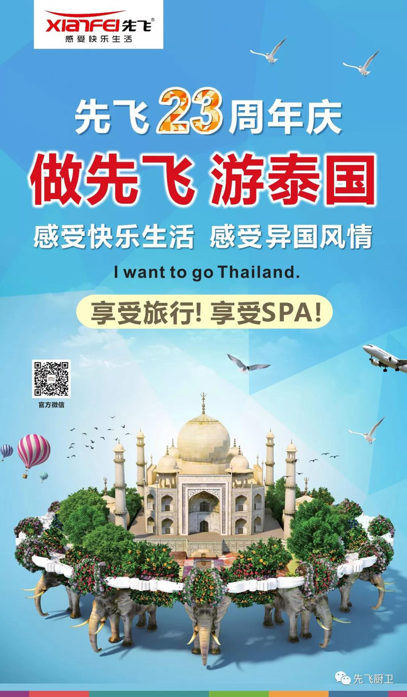 先飛以感受快樂生活為品牌核心文化,感恩與福利之旅先從營(yíng)銷團(tuán)隊(duì)開始。2017年上半年公司總部營(yíng)銷團(tuán)隊(duì)出游新加坡+馬來西亞。下半年?duì)I銷團(tuán)隊(duì)出游泰國(guó):感受國(guó)際大都會(huì)曼谷、浪漫芭堤雅、享受SPA.....為答謝全國(guó)各級(jí)先飛終端零售商的支持與厚愛,值先飛電器23周年慶之際,特舉辦“做先飛,游泰國(guó)”活動(dòng)。