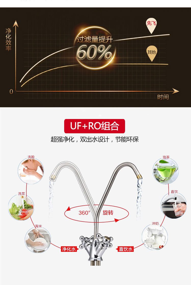 UF+RO組合,超強凈化,雙出水設計,節(jié)能環(huán)保;
