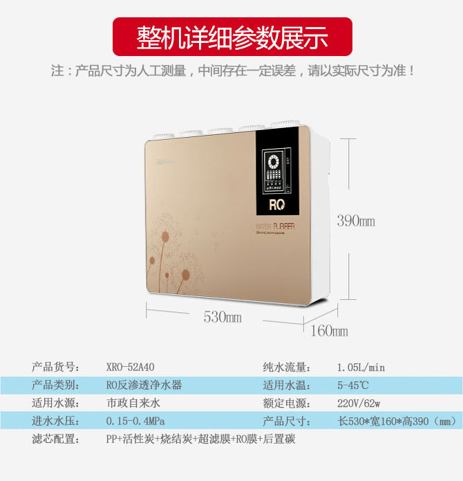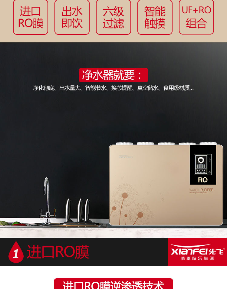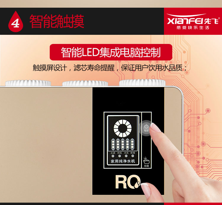 智能led集成電腦控制,觸摸屏設計,濾芯壽命提醒,保證用戶飲用水品質(zhì);