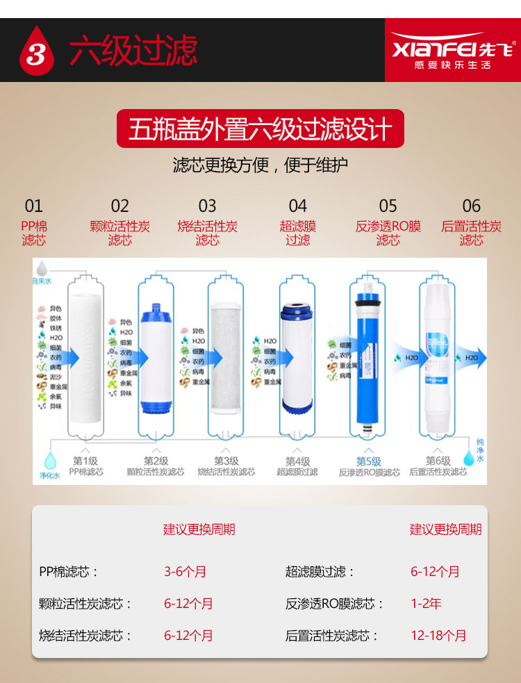 采用五瓶蓋外置六級過濾設計方案,濾芯更換方便,便于維護;