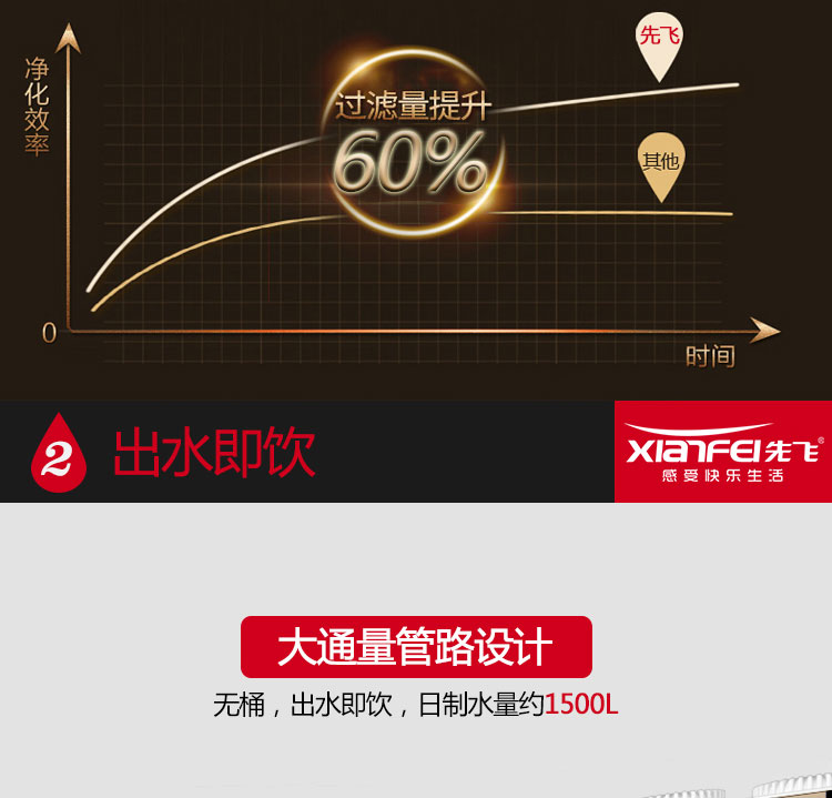 大通量管路設計,無桶,出水即飲,日制水量約1500L;