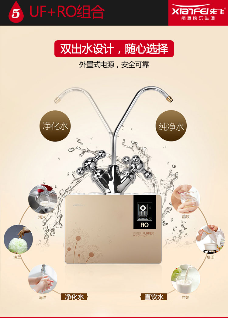 UF+RO組合,雙出水設計,隨心選擇;外置式電源,安全可靠;