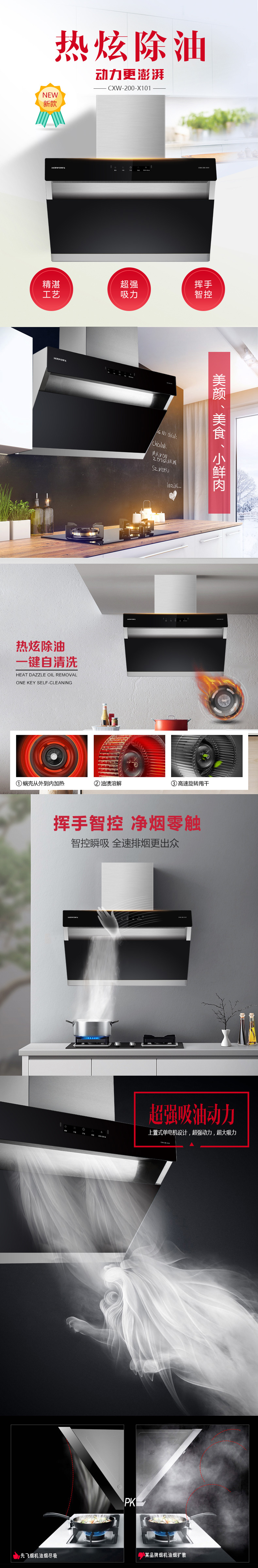 熱炫除油 一鍵自清洗 超強(qiáng)吸油動(dòng)力 揮手智控 凈煙零觸 黑晶玻璃 輕輕一抹 煥然一新 大油杯貼墻設(shè)計(jì) 閃電般速吸油煙 20m3/min