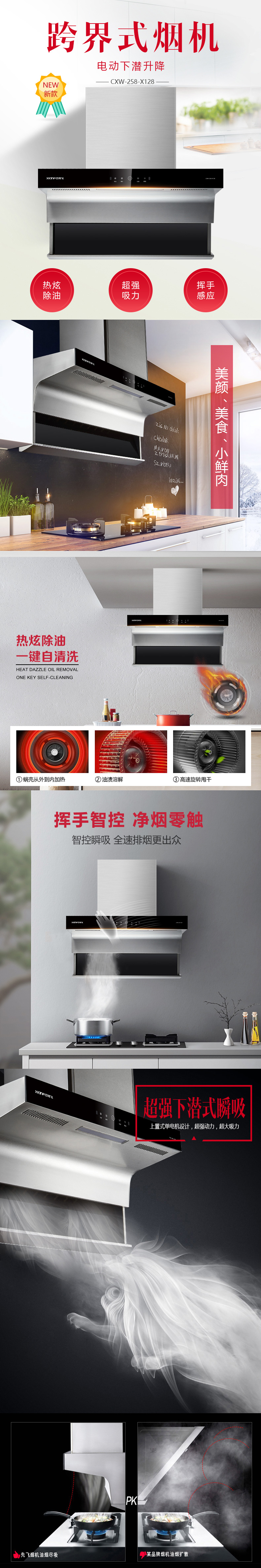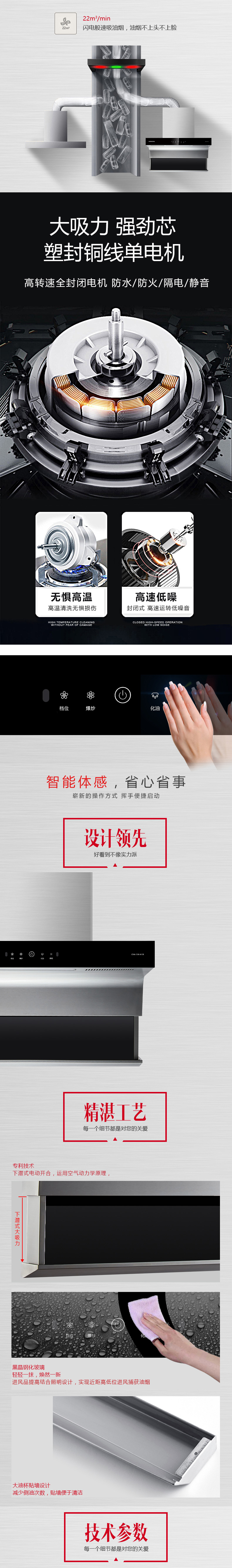 熱炫除油 一鍵自清洗 電動下潛升降 超強(qiáng)吸油動力 揮手智控 凈煙零觸 黑晶玻璃 輕輕一抹 煥然一新 大油杯貼墻設(shè)計(jì) 閃電般速吸油煙 22m3/min